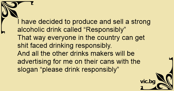 I have decided to produce and sell a strong alcoholic drink called “Responsibly”