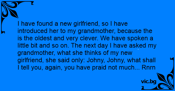 I have found a new girlfriend, so I have introduced her to my grandmother, because the is the oldest and very clever. We have spoken a little bit and so on. The next day I have asked my grandmother, what she thinks of my new girlfriend, she said only: Johny, Johny, what shall I tell you, again, you have praid not much... Rnrn