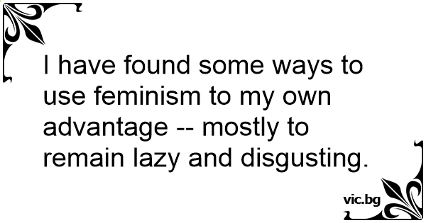 I have found some ways to use feminism to my own advantage -- mostly to remain lazy and disgusting.