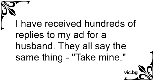I have received hundreds of replies to my ad for a husband. They all say the same thing - "Take mine."