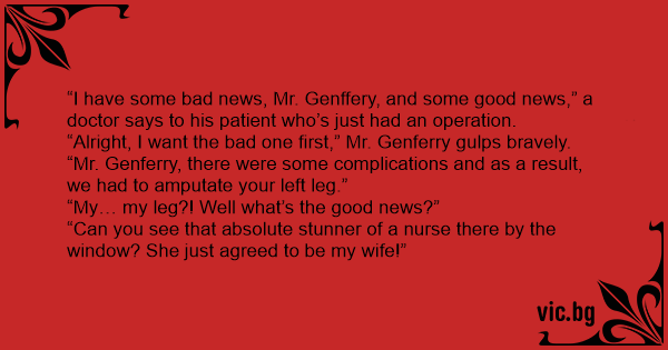 “I have some bad news, Mr. Genffery, and some good news,” a doctor says to his patient who’s just had an operation.