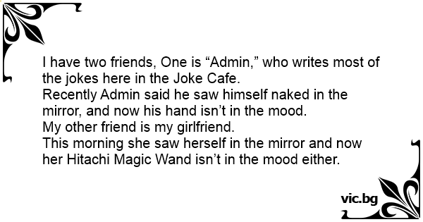 I have two friends, One is “Admin,” who writes most of the jokes here in the Joke Cafe.