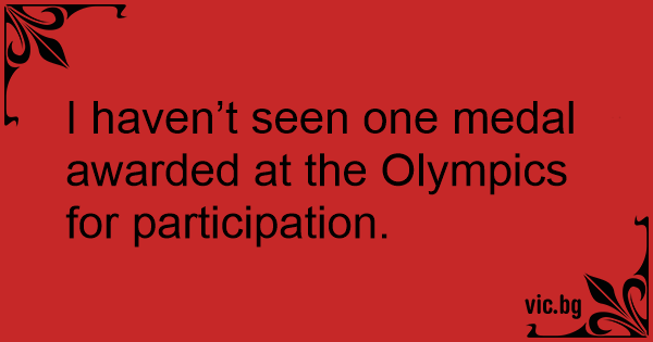 I haven’t seen one medal awarded at the Olympics for participation.