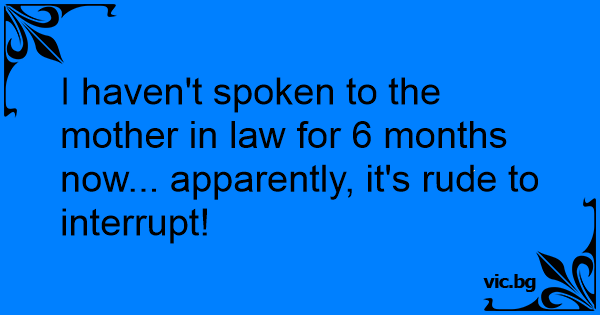 I haven't spoken to the mother in law for 6 months now... apparently, it's rude to interrupt!