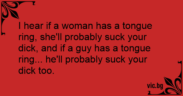 I hear if a woman has a tongue ring, she'll probably suск your diск, and if a guy has a tongue ring... he'll probably suск your diск too.