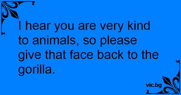 I hear you are very kind to animals, so please give that face back to the gorilla.
