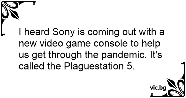 I heard Sony is coming out with a new video game console to help us get through the pandemic. It's called the Plaguestation 5.