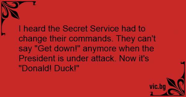 I heard the Secret Service had to change their commands. They can't say "Get down!" anymore when the President is under attack. Now it's "Donald! Duck!"