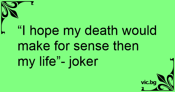“I hope my death would make for sense then my life”- joker