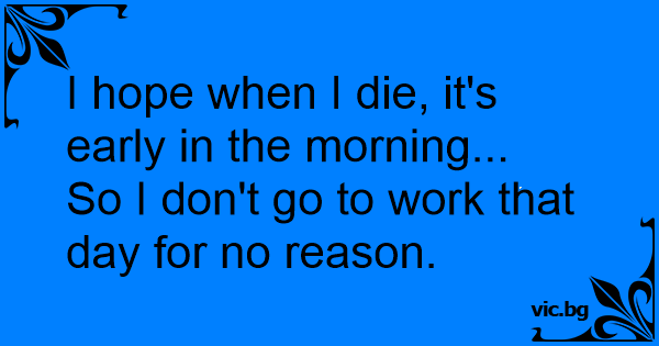 I hope when I die, it's early in the morning...