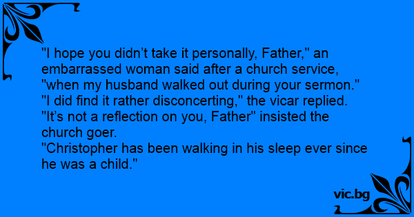 "I hope you didn’t take it personally, Father," an embarrassed woman said after a church service, "when my husband walked out during your sermon."