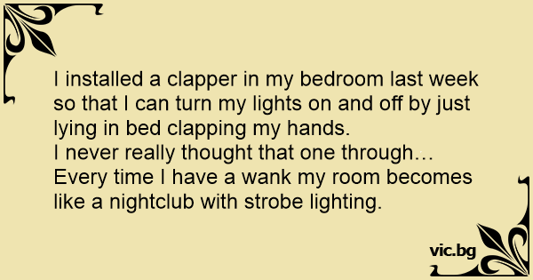 I installed a clapper in my bedroom last week so that I can turn my lights on and off by just lying in bed clapping my hands.