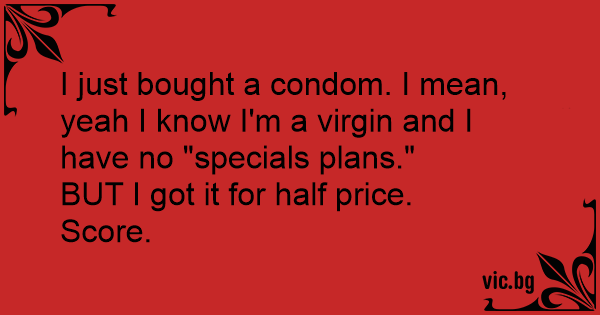 I just bought a соndом. I mean, yeah I know I'm a virgin and I have no "specials plans."