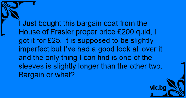 I Just bought this bargain coat from the House of Frasier proper price £200 quid, I got it for £25. It is supposed to be slightly imperfect but I’ve had a good look all over it and the only thing I can find is one of the sleeves is slightly longer than the other two.