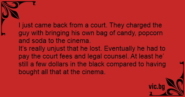 I just came back from a court. They charged the guy with bringing his own bag of candy, popcorn and soda to the cinema.