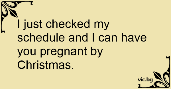 I just checked my schedule and I can have you pregnant by Christmas.