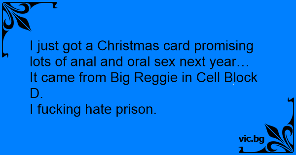 I just got a Christmas card promising lots of аnаl and оrаl sеx next year…<br />It came from Big Reggie in Cell Block D.<br />I fuскing hate prison.