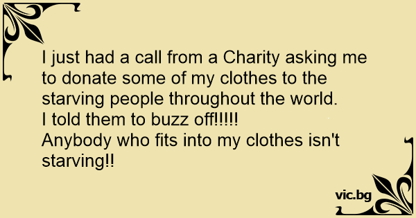 I just had a call from a Charity asking me to donate some of my clothes to the starving people throughout the world.