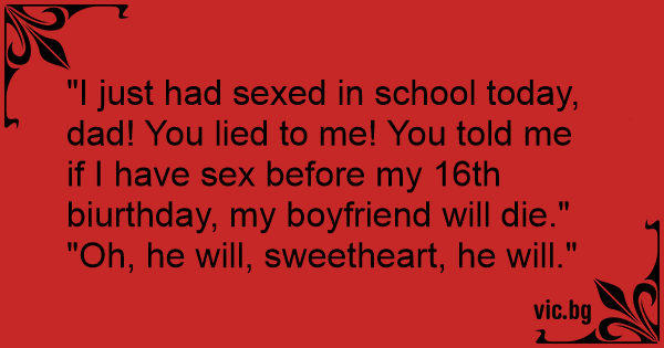 – Тате, ти ме излъга! Днес имахме час по сексология. Приятелят ми няма да умре, ако правим секс преди да навърша 16! – Ще умре миличка, ще умре...
