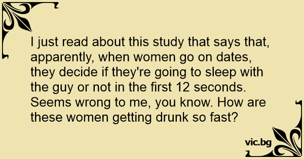 I just read about this study that says that, apparently, when women go on dates, they decide if they're going to sleep with the guy or not in the first 12 seconds. Seems wrong to me, you know. How are these women getting drunк so fast?