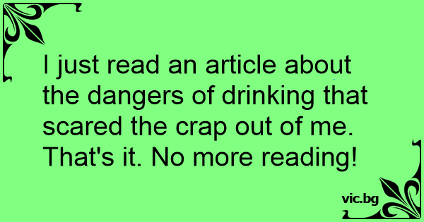 I just read an article about the dangers of drinking that scared the сrар out of me. That's it. No more reading!