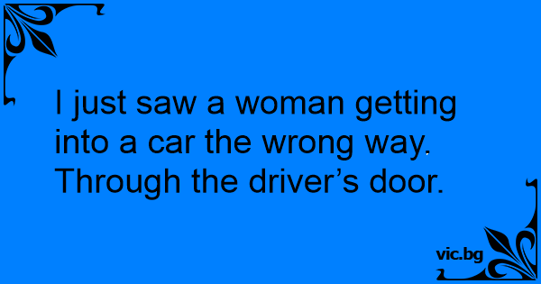 I just saw a woman getting into a car the wrong way.