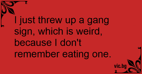 I just threw up a gang sign, which is weird, because I don't remember eating one.