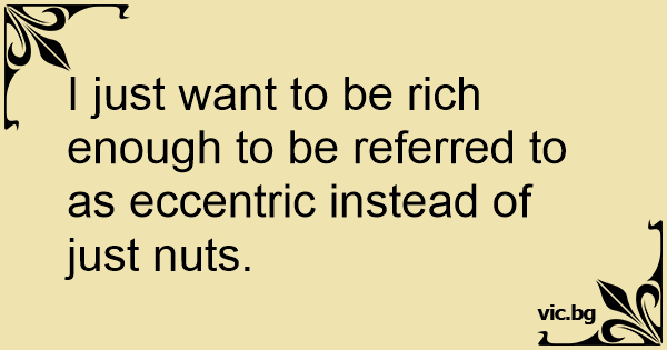 I just want to be rich enough to be referred to as eccentric instead of just nuts.