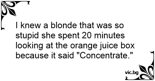 I knew a blonde that was so sтuрid she spent 20 minutes looking at the orange juice box because it said "Concentrate."