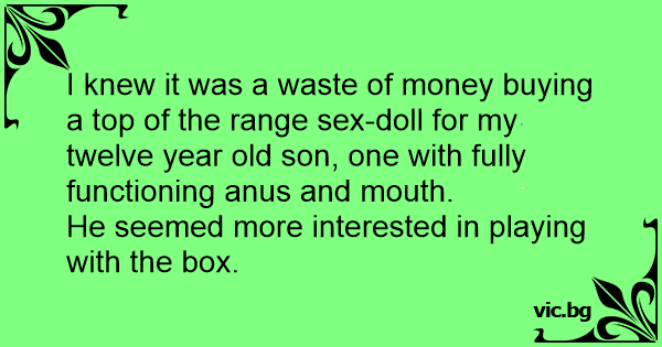 I knew it was a waste of money buying a top of the range sеx-doll for my twelve year old son, one with fully functioning аnus and mouth.