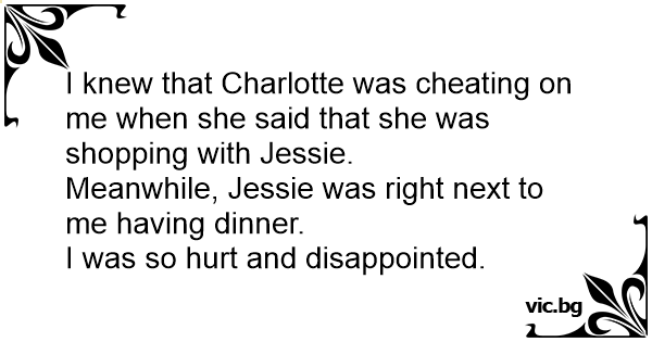 I knew that Charlotte was cheating on me when she said that she was shopping with Jessie.