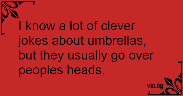 I know a lot of clever jokes about umbrellas, but they usually go over peoples heads.
