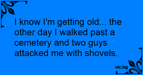 I know I'm getting old... the other day I walked past a cemetery and two guys attacked me with shovels.