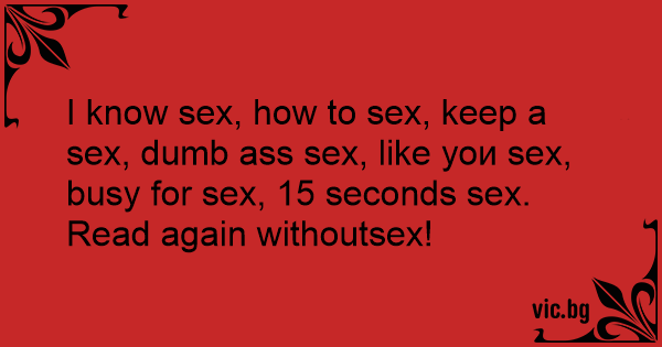 I know sex, how to sex, kеер а sex, dumb ass sex, like уои sex, busy for sex, 15 seconds sex.