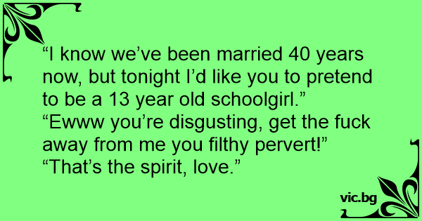 “I know we’ve been married 40 years now, but tonight I’d like you to pretend to be a 13 year old schoolgirl.”