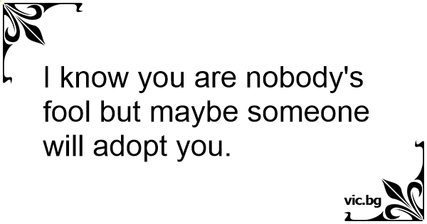 I know you are nobody's fool but maybe someone will adopt you.