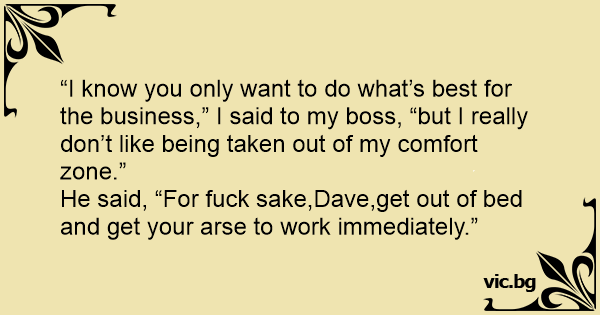 He said, “For fuск sake,Dave,get out of bed and get your аrsе to work immediately.”