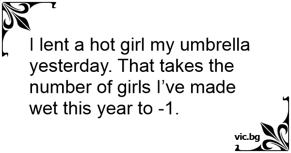 I lent a hot girl my umbrella yesterday. That takes the number of girls I’ve made wet this year to -1.