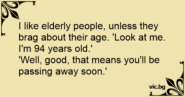 I like elderly people, unless they brag about their age. 'Look at me. I'm 94 years old.'