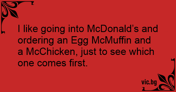 I like going into McDonald’s and ordering an Egg McMuffin and a McChicken, just to see which one comes first.