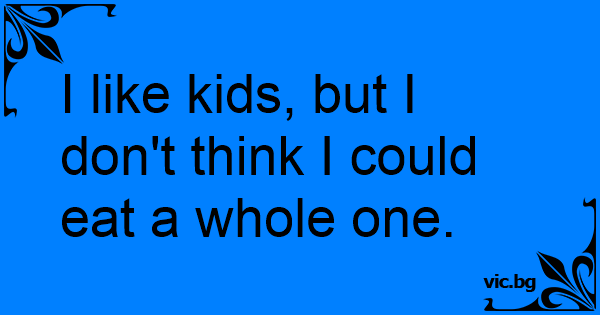 I like kids, but I don't think I could eat a whole one.