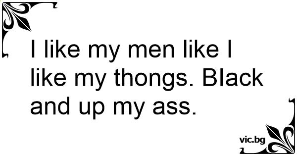 I like my men like I like my thongs. BIack and up my аss.