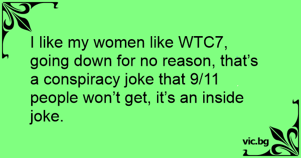 I like my women like WTC7, going down for no reason, that’s a conspiracy joke that 9/11 people won’t get, it’s an inside joke.