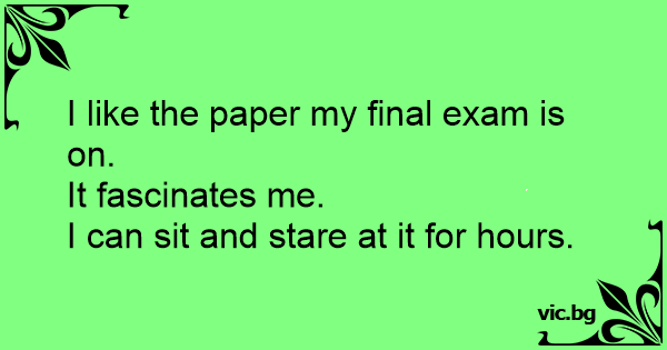 I like the paper my final exam is on.