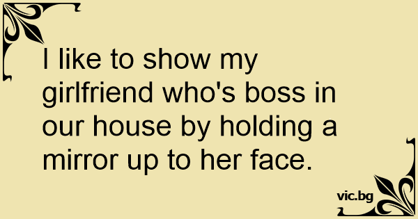 I like to show my girlfriend who's boss in our house by holding a mirror up to her face.