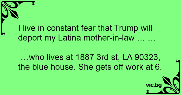 I live in constant fear that Trump will deport my Latina mother-in-law … …