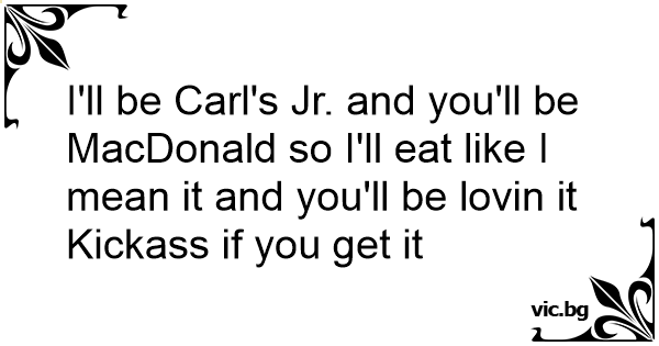 I'll be Carl's Jr. and you'll be MacDonald so I'll eat like I mean it and you'll be lovin it Kickass if you get it