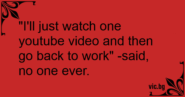 "I'll just watch one youtube video and then go back to work" -said, no one ever.