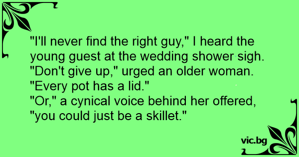 "I'll never find the right guy," I heard the young guest at the wedding shower sigh.