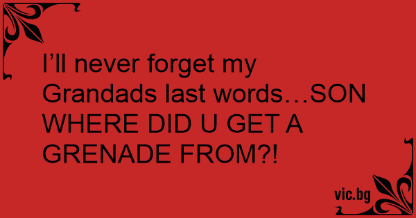 I’ll never forget my Grandads last words…SON WHERE DID U GET A GRENADE FROM?!